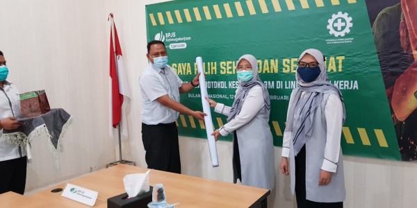 Telusur.co.id BPJamsostek Cabang Kisaran dalam rangka memperigati bulan Keselamatan dan Kesehatan Kerja (K3) nasional, memberikan corona