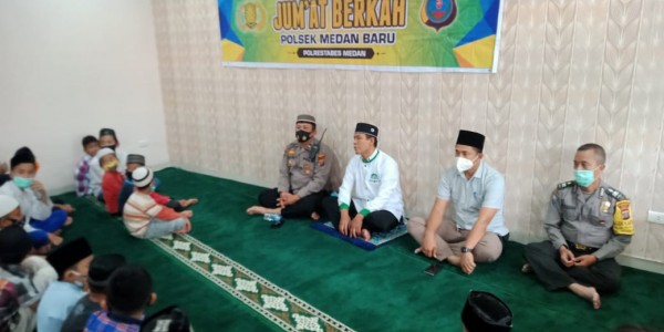 Telusur.co.id moment Jumat Barokah, Polsek Medan Baru, Polrestabes Medan gelar santunan kepada anak yatim di Mushollah